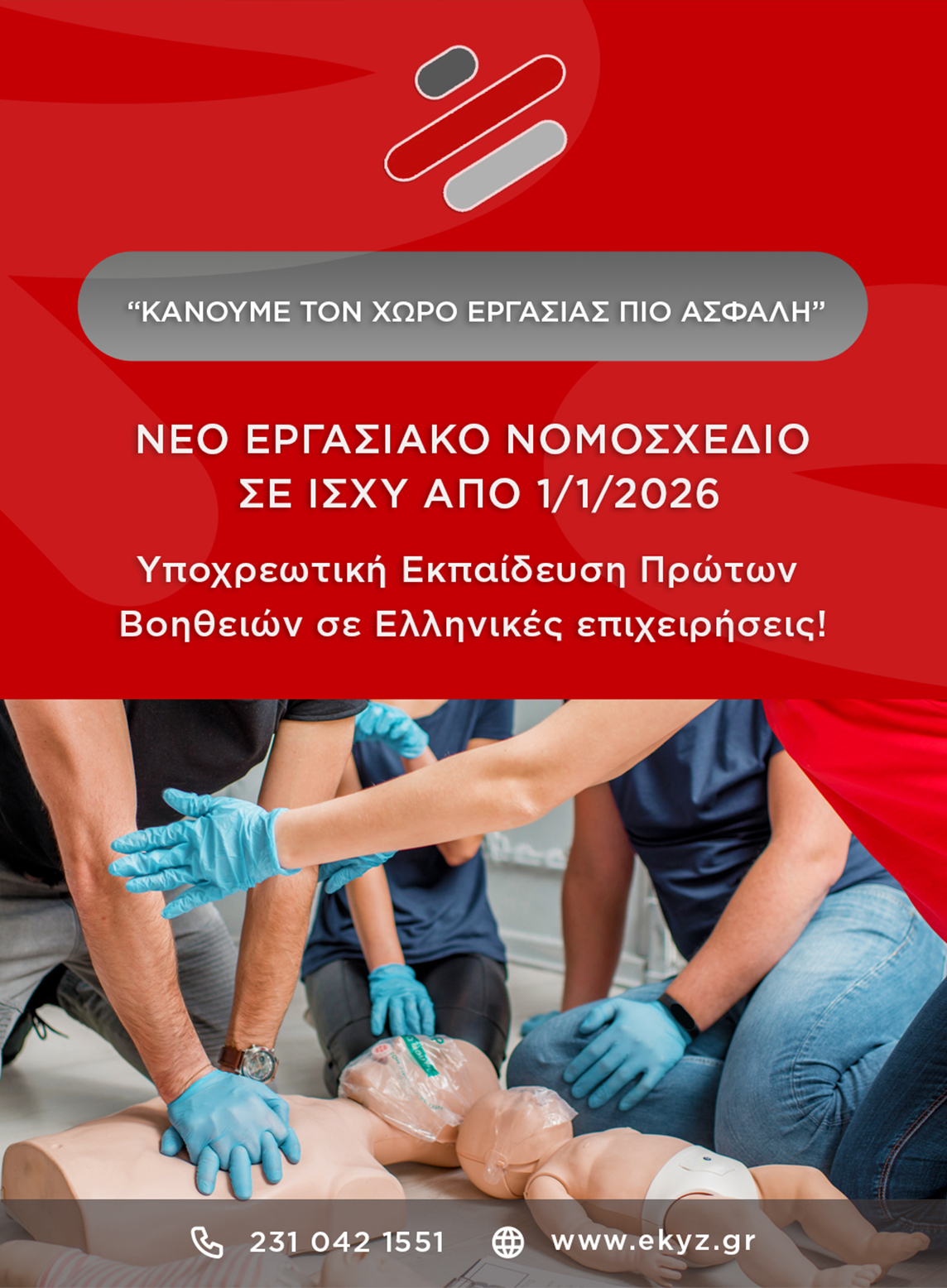 Η οργάνωση σε θέματα Πρώτων Βοηθειών, Πυρασφάλειας,Πυρόσβεσης, Εκκένωσης και Διάσωσης είναι ουσιώδης για την αποτελεσματική αντιμετώπιση καταστάσεων έκτακτης ανάγκης. Το ΕΚΥΖ πάντα με άξονα τον άνθρωπο έχει δημιουργήσει όλες τις προϋποθέσεις για μια σωστή και αποτελεσματική εκπαίδευση σε εταιρείες αλλά και ιδιώτες με στόχο την σωστή επιμόρφωση